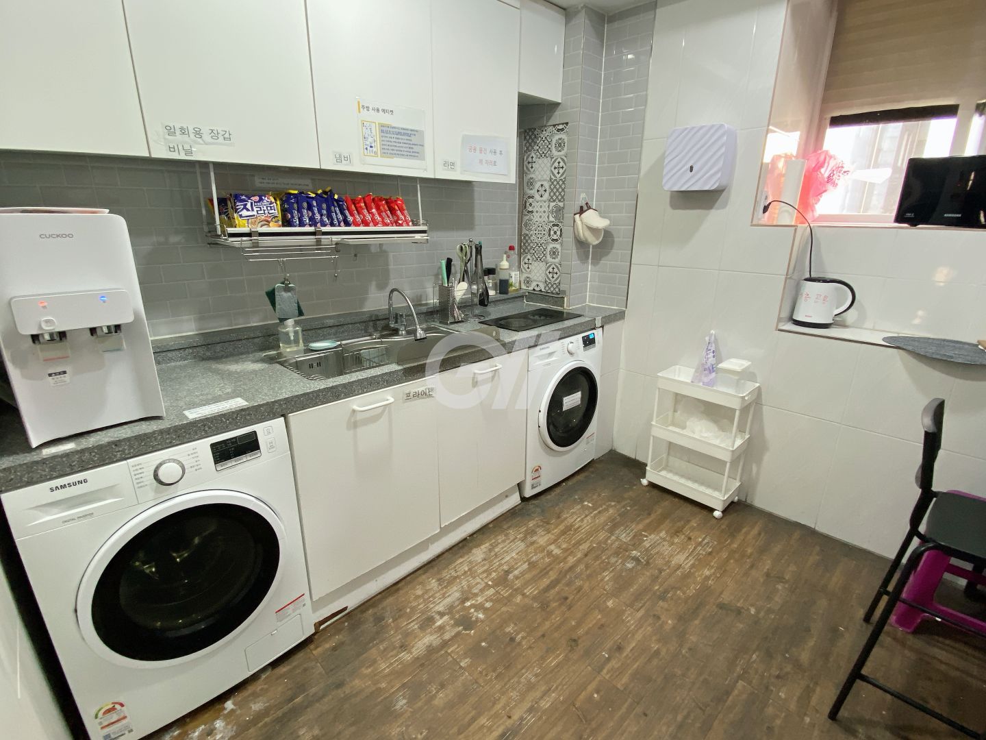 -리모델링으로 깨끗한 주방 -개별 Giga wifi 인터넷 설치 -개별 디지털 도어락 설치 -삼성전자 드럼 세탁기 2대(2023년 교체), 삼성 의류 건조기 1대(9kg) -입주자들의 안전을 위해 고화질 500만화소 CCTV 24시간 녹화 -넓은 옥상 -예약금 10만원을 입금해 주셔야 예약이 확정 됩니다. (예약금은 보증금으로 대체 되오며, 퇴실시 반환해 드립니다. 단, 퇴실 10일전에 고지 의무) -주소이전, 전입신고 가능 -5일이상 단기 환영(침구포함) -밥(국내산쌀:상등급), 라면(진라면), 조미료, 세제 제공 -방 교체시 청소비 2만원 -외창 원룸(개인 샤워실+개인 화장실) (1개월) 410,000 원 (단기 1일) 25,000원 -내창 원룸(개인 샤워실+개인 화장실) (1개월) 380,000 원 -미니룸(공용 샤워실+공용 화장실) (1개월) 내창 290,000 , 외창 310,000 원 (단기 1일)18,000원