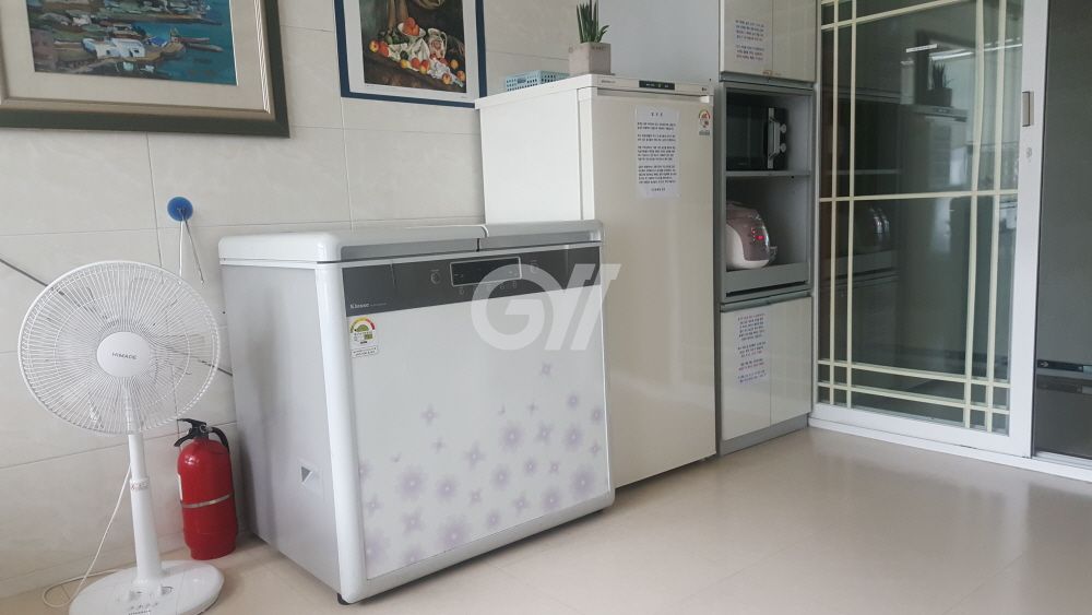 공용냉장고, 인덕션, 전자레인지, 전기포트, 전기밥솥, 토스트기, 정수기, 조리도구, 식탁
