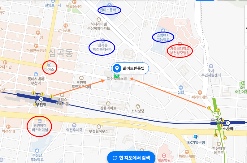 ( 부천역, 소사역에서 도보 거리 )