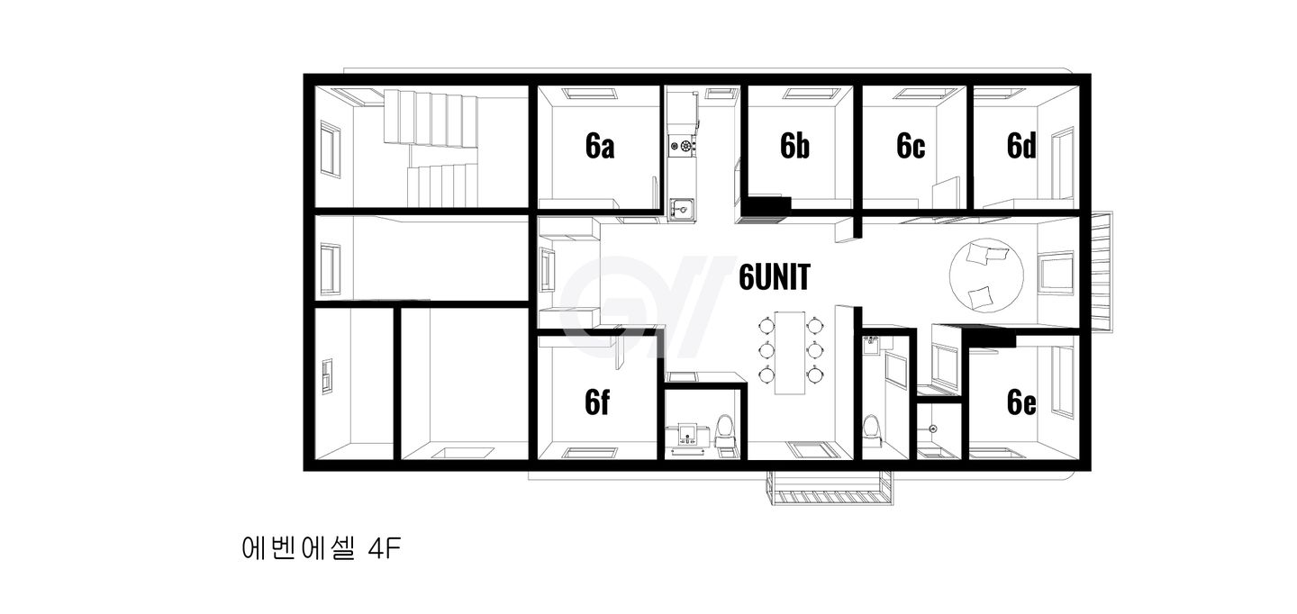 각 방에 샤워실과 화장실이 모두 없는 방 구조입니다. 공용샤워실과 공용화장실을 이용해야 합니다.
