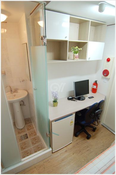 각 방에 샤워실과 화장실이 모두 없는 방 구조입니다. 공용샤워실과 공용화장실을 이용해야 합니다.