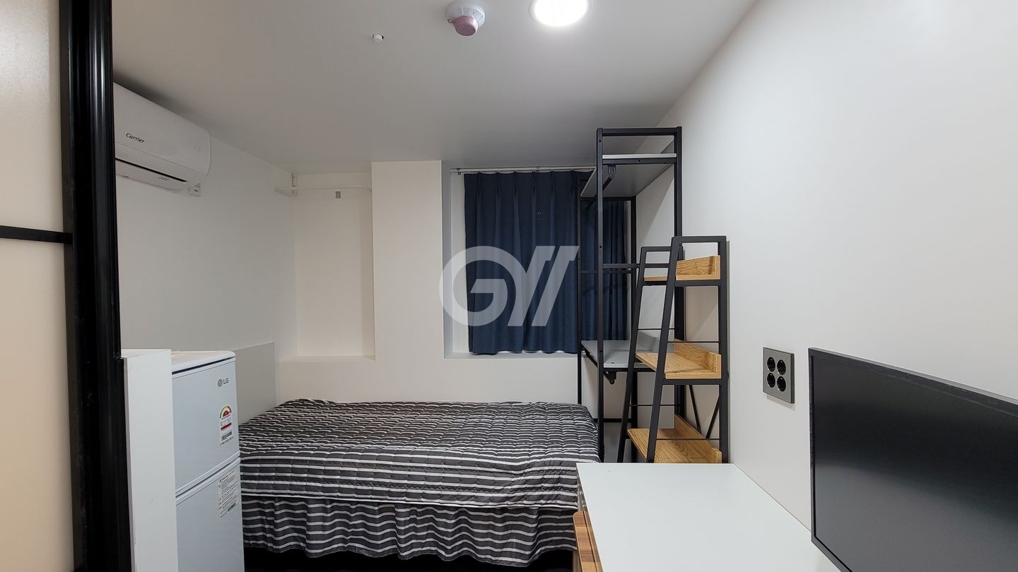 개인공간 : 27인치 커브드 TV, 에어컨, Wifi, 세탁기, 개인화장실, 책상, 의자, 침대, 옷장 포함.