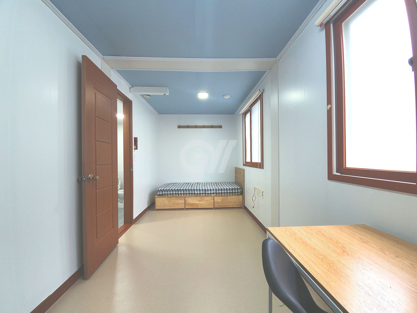 각 방에 샤워실과 화장실이 모두 없는 방 구조입니다. 공용샤워실과 공용화장실을 이용해야 합니다.