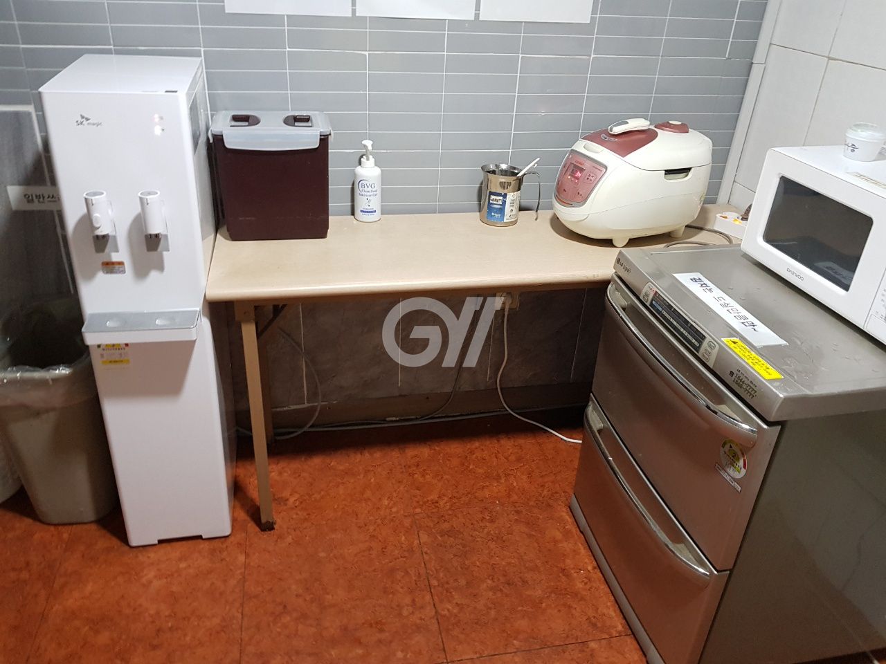 공용냉장고, 가스레인지, 전자레인지, 전기밥솥, 정수기, 조리도구, 식탁