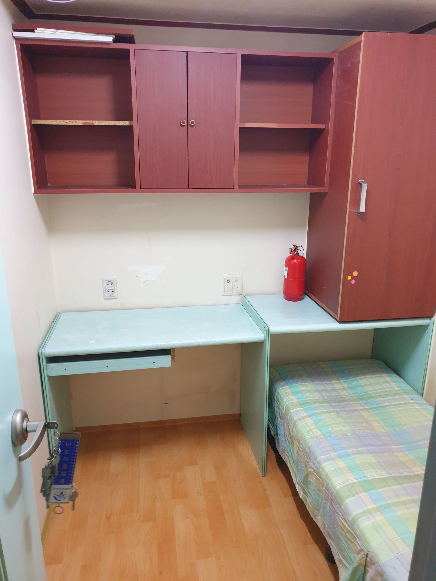 각 방에 샤워실과 화장실이 모두 없는 방 구조입니다. 공용샤워실과 공용화장실을 이용해야 합니다.