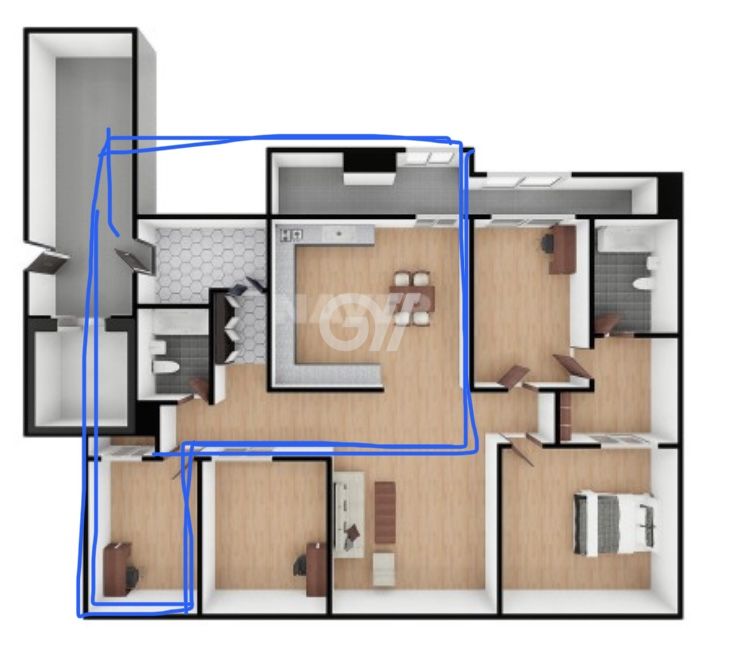 각 방에 샤워실과 화장실이 모두 있는 방 구조입니다.