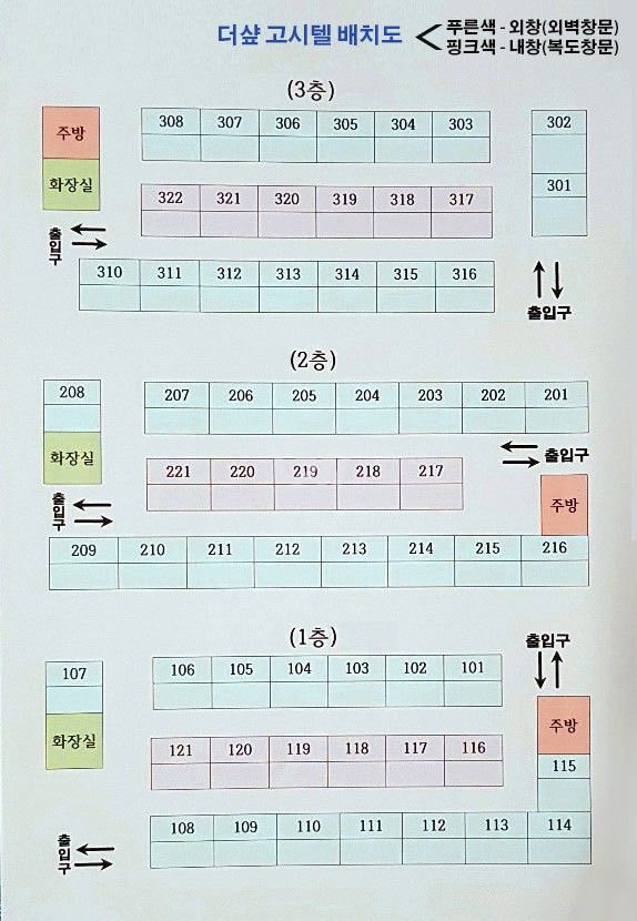 다양한 방 종류가 혼합된 고시원입니다.