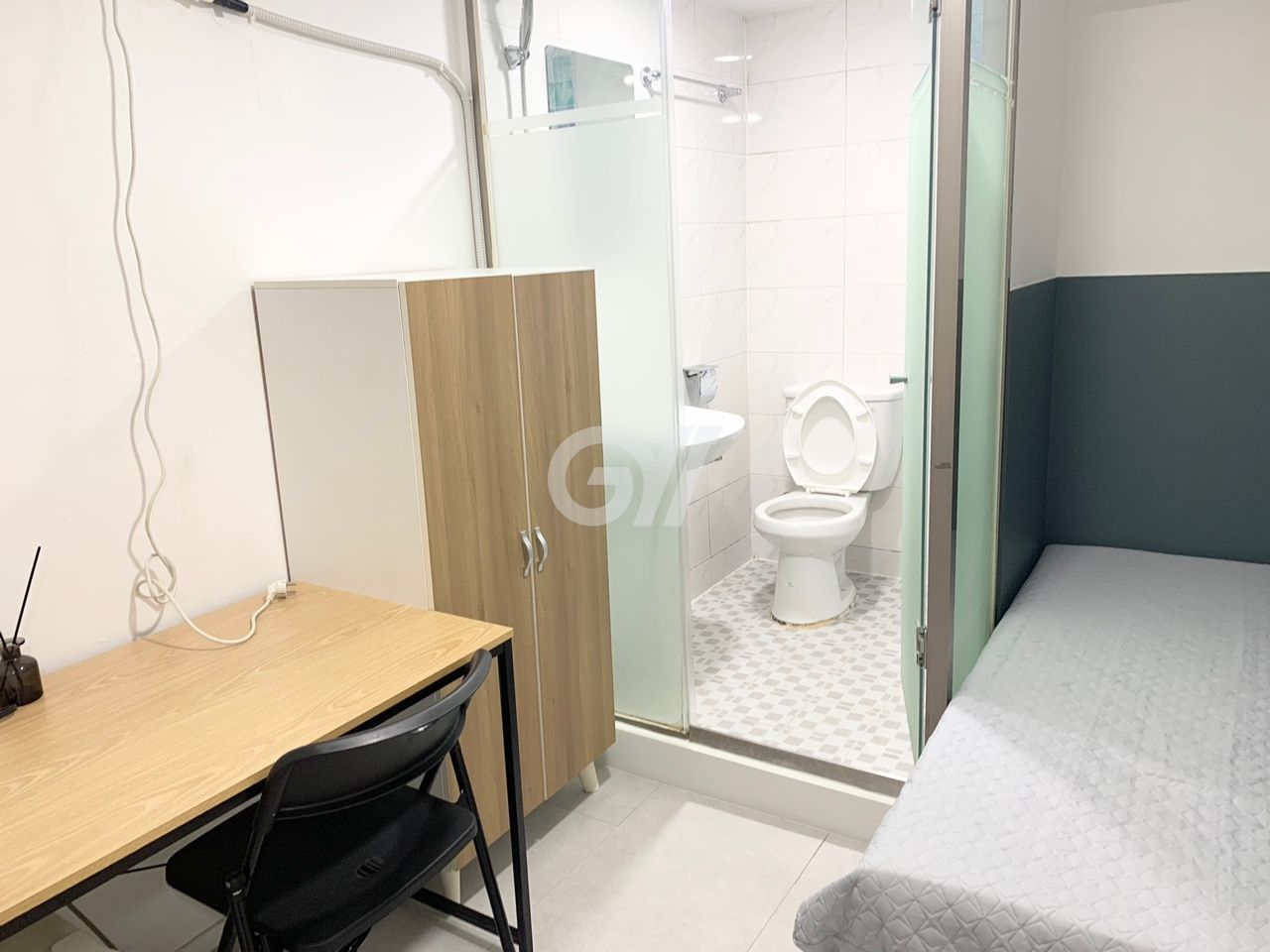 각 방에 샤워실과 화장실이 모두 없는 방 구조입니다. 공용샤워실과 공용화장실을 이용해야 합니다.