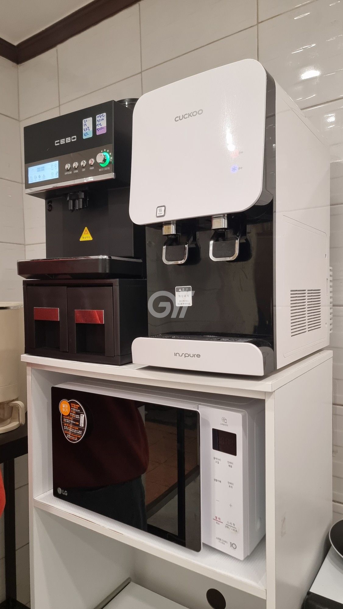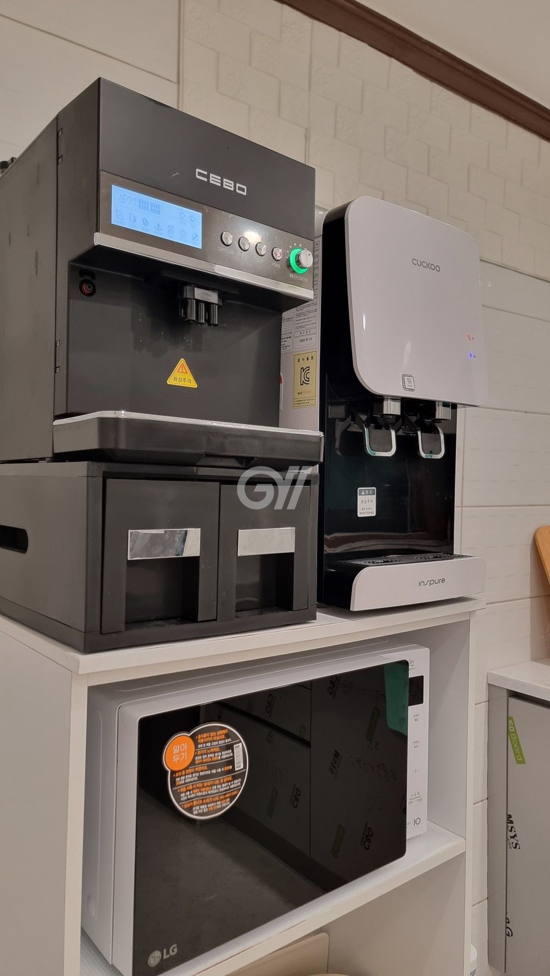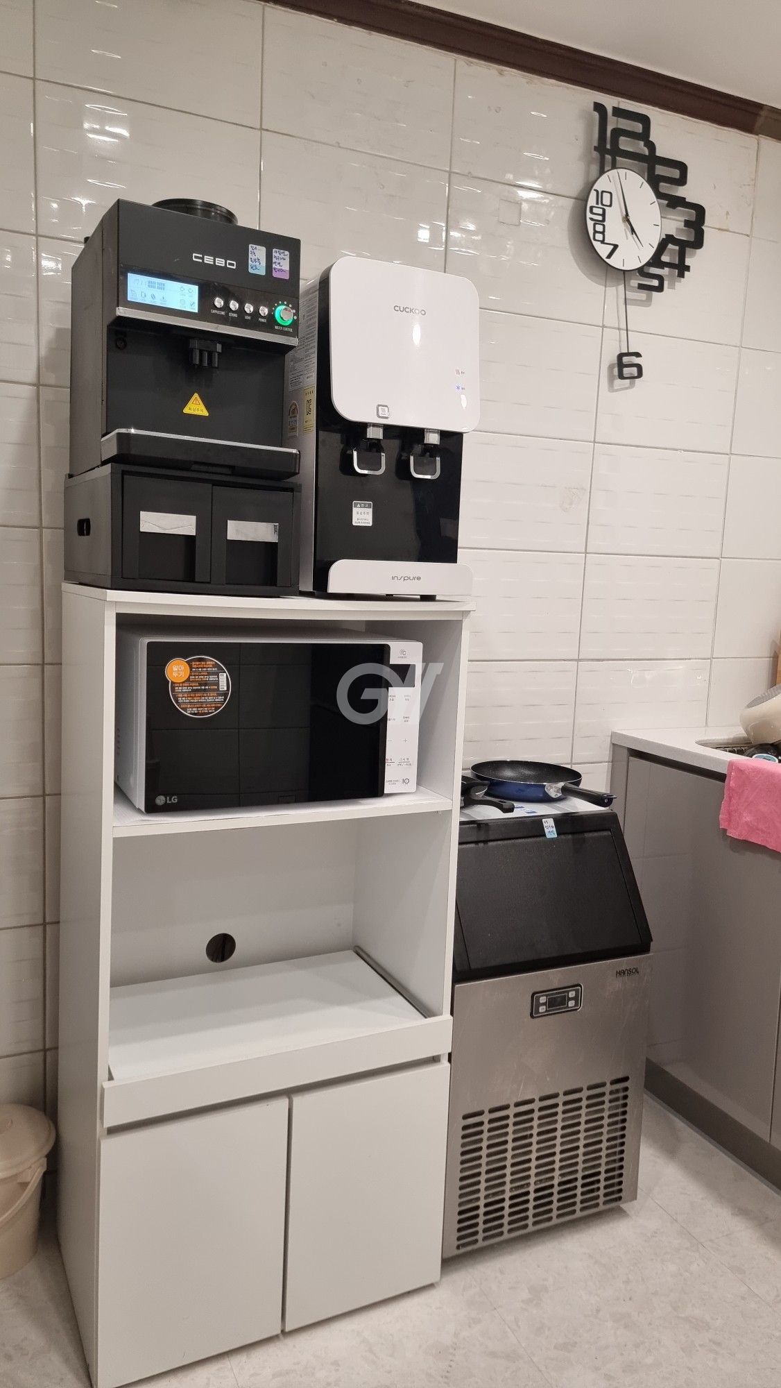 공용냉장고, 인덕션, 전자레인지, 전기포트, 전기밥솥, 커피머신, 정수기, 조리도구, 식탁