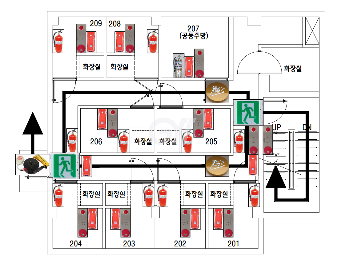 CCTV, 공동현관 도어락, 소화기, 스프링쿨러