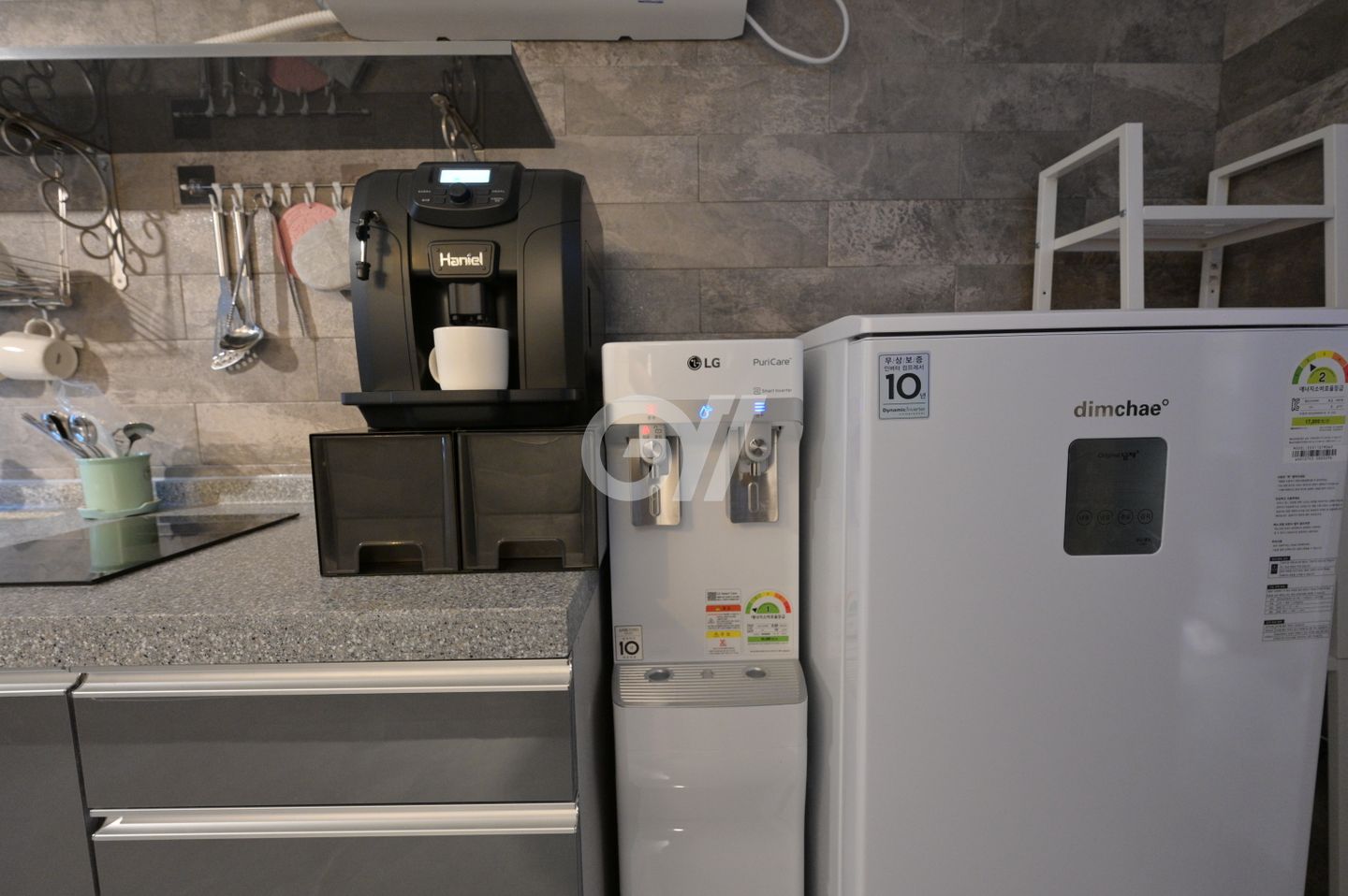 공용냉장고, 인덕션, 전기밥솥, 커피머신, 정수기, 조리도구, 식탁