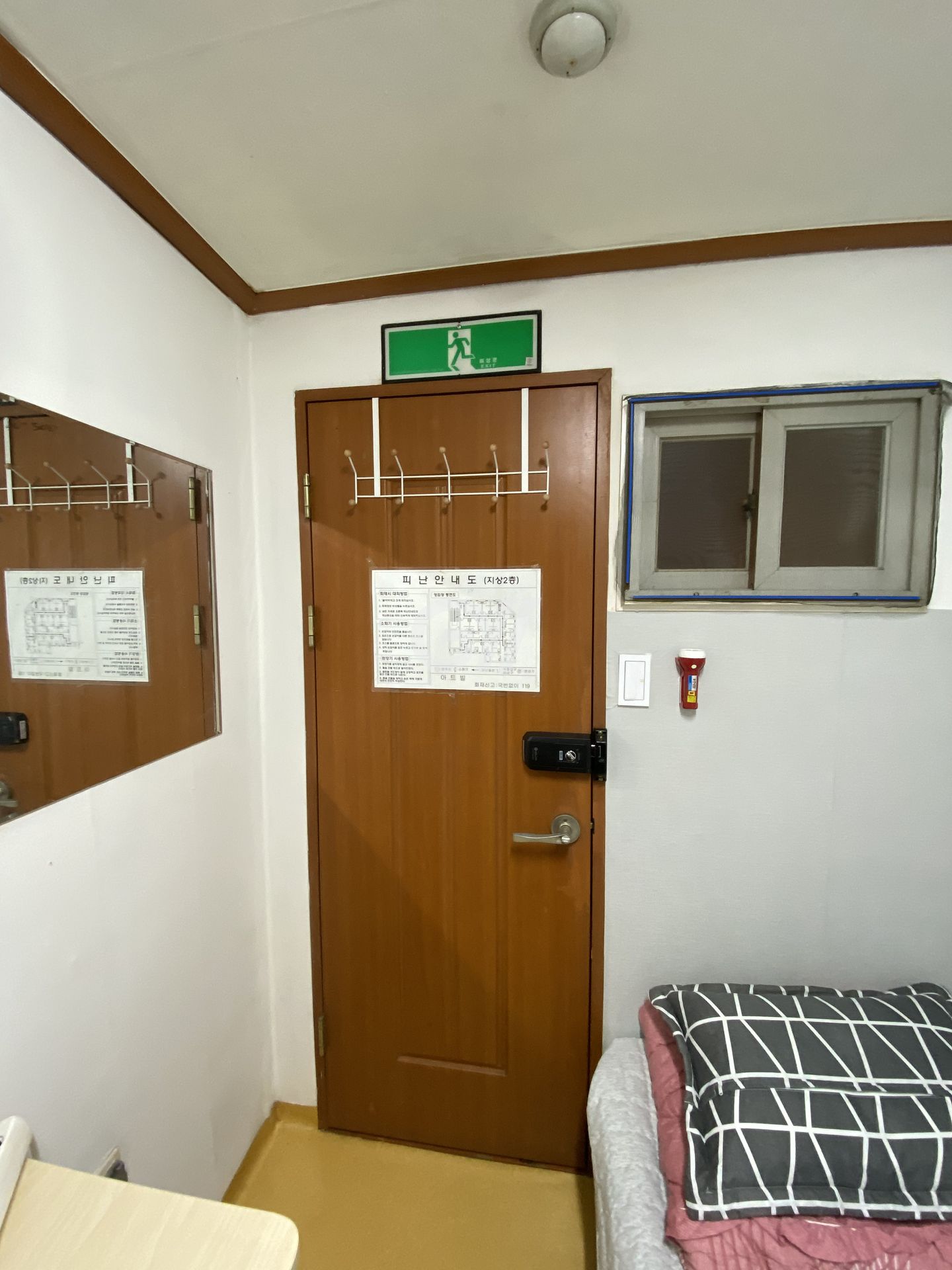 각 방에 샤워실과 화장실이 모두 없는 방 구조입니다. 공용샤워실과 공용화장실을 이용해야 합니다.