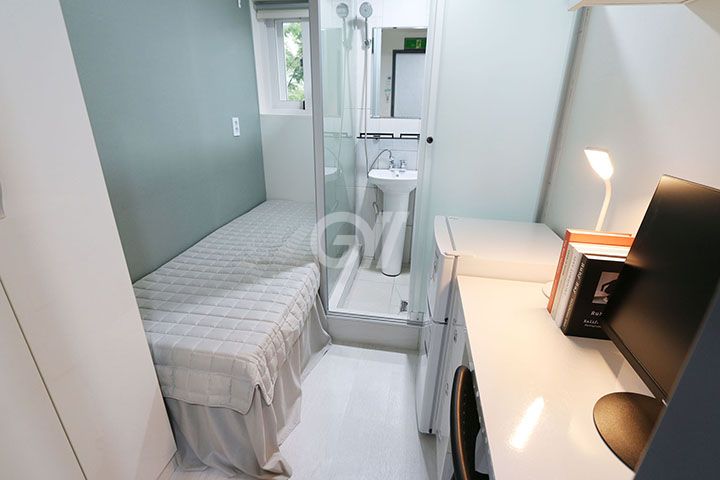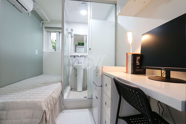 모든 룸이 풀옵션으로 각방에 화장실 , 샤워시설 , 에어컨 , 냉동보관 가능 2도어 냉장고 , 개별와이파이 , 책상 , 옷장 , 수납장 등 생활에 필요한 편의시설이 잘 갖추어져 있으며 공용 세탁기 3대 , 공용 건조기 2대 , 전자레인지 , 밥통, 정수기 등 기본적인 거주 환경이 청결하고 쾌적합니다.