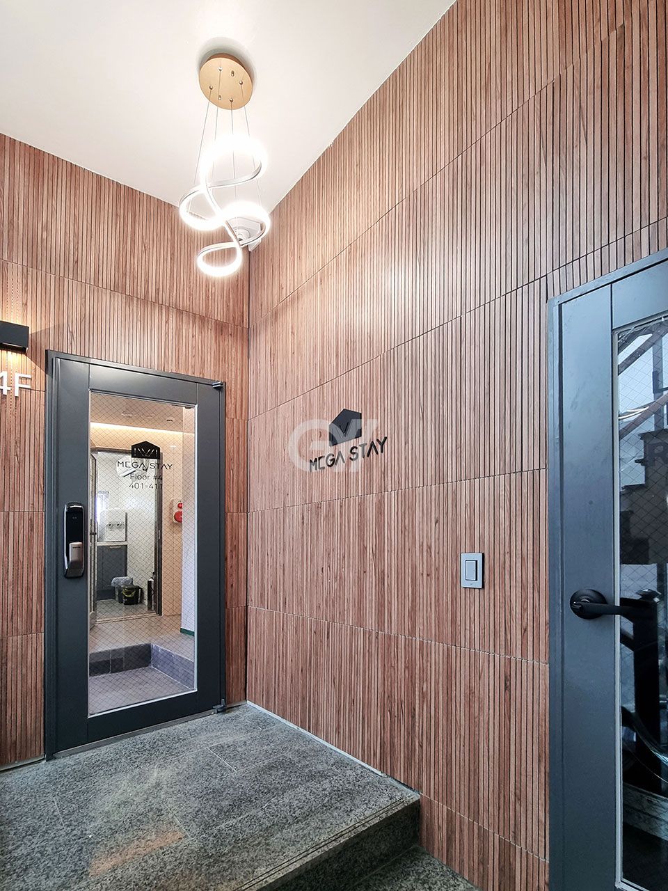 - 이중도어락: 각 층별 1차 출입통제하고 각 방 2차 개별 디지털 도어락으로 안전을 최우선 하였습니다.