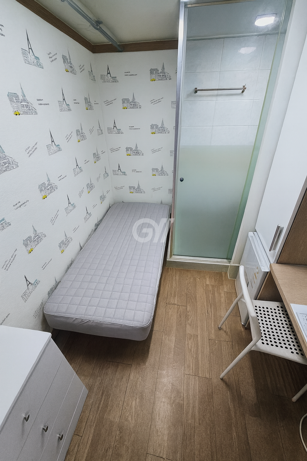 각 방에 샤워실과 화장실이 모두 없는 방 구조입니다. 공용샤워실과 공용화장실을 이용해야 합니다.