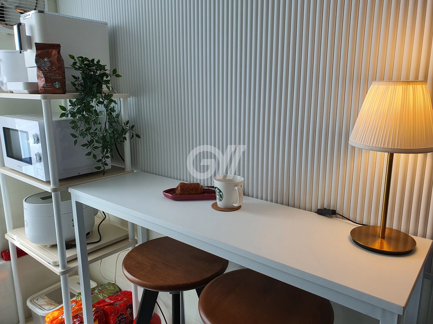 공용냉장고, 인덕션, 전자레인지, 전기밥솥, 토스트기, 커피머신, 정수기, 조리도구, 식탁