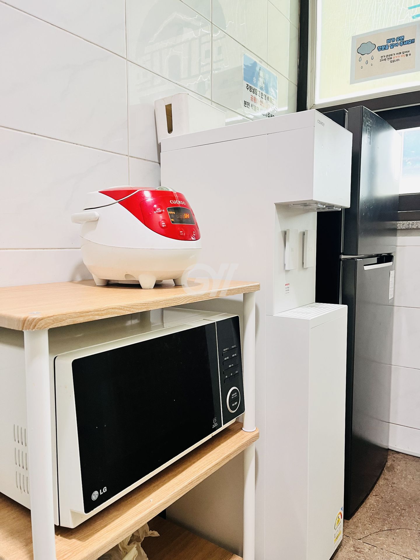 공용냉장고, 가스레인지, 전자레인지, 전기밥솥, 정수기, 조리도구