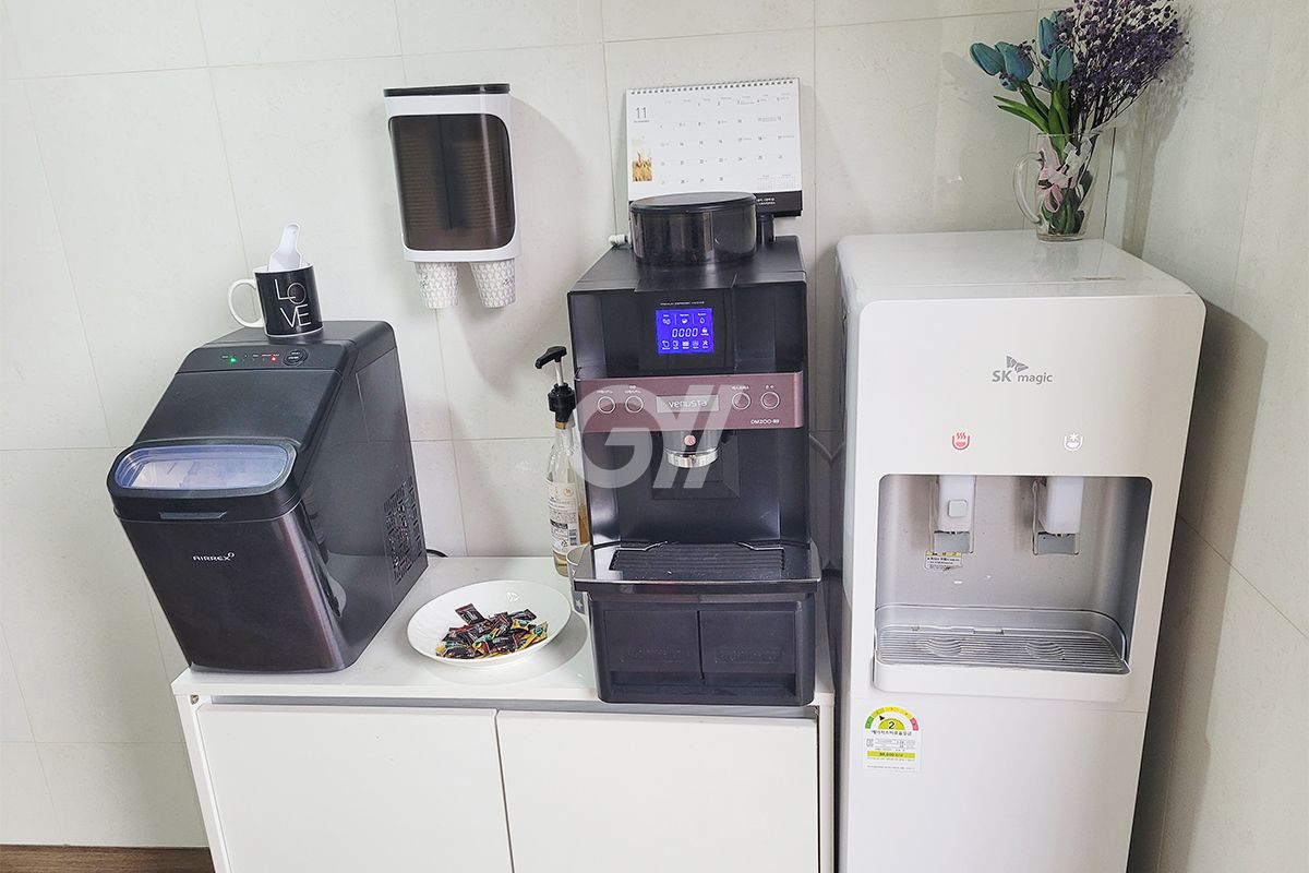공용냉장고, 인덕션, 전기밥솥, 토스트기, 커피머신, 정수기, 조리도구, 식탁