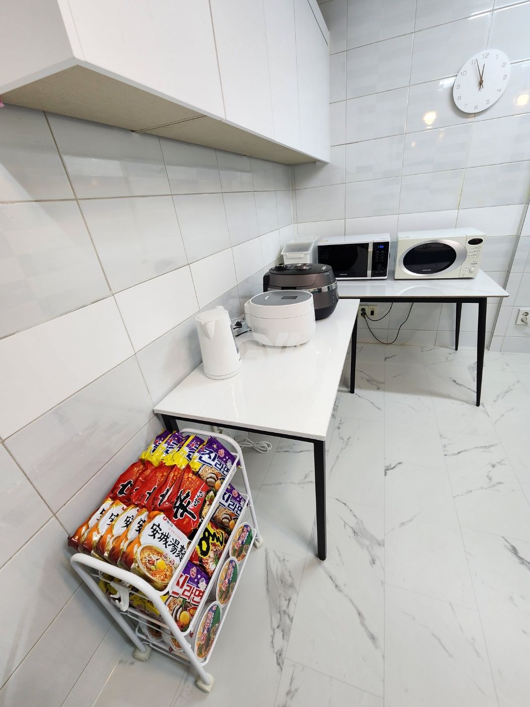 공용냉장고, 가스레인지, 전자레인지, 전기포트, 전기밥솥, 토스트기, 정수기, 조리도구, 식탁