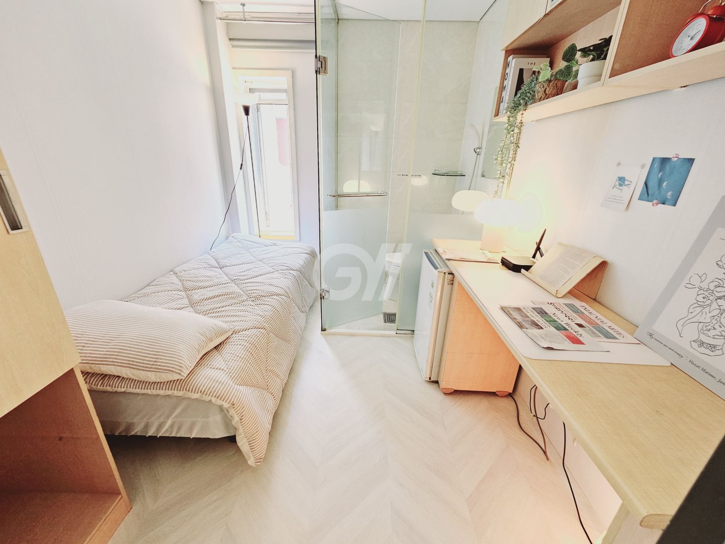 -. 개별 시스템 에어컨,화장실,샤워실이 룸안에 갖춰진 원룸형 구조로 프라이빗한 생활에 안성맞춤.