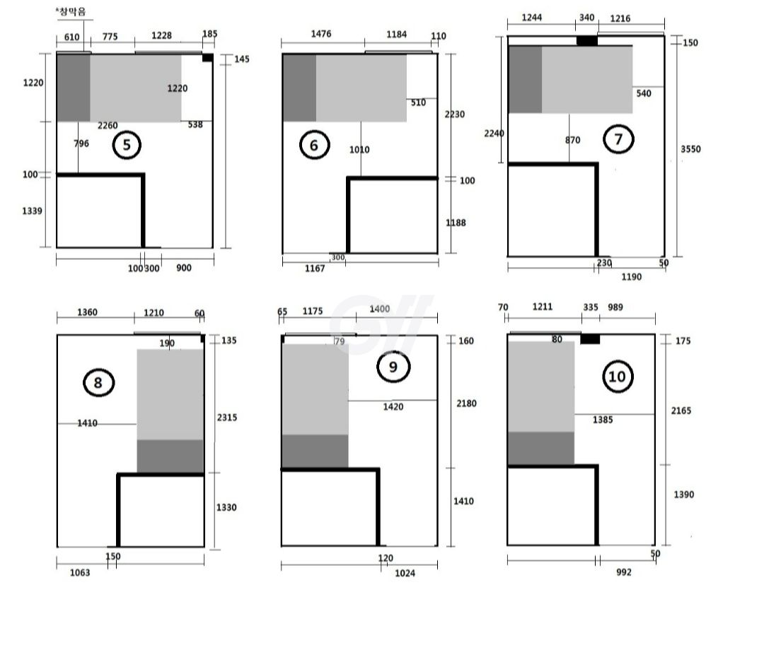 다양한 방 종류가 혼합된 고시원입니다.