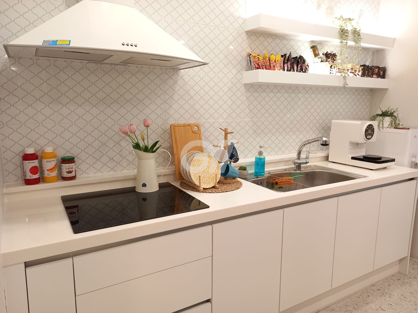 인덕션, 전자레인지, 전기포트, 전기밥솥, 커피머신, 정수기, 조리도구, 식탁