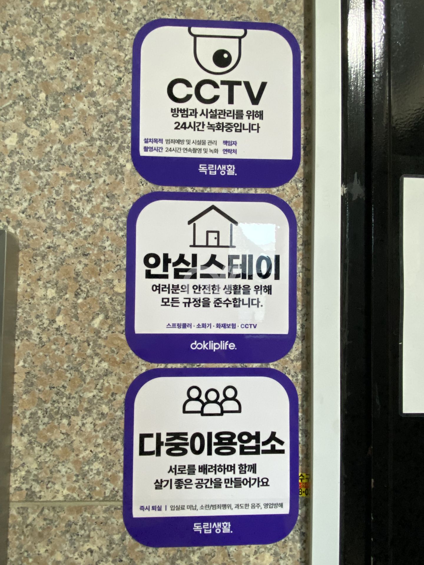 CCTV, 공동현관 도어락, 소화기, 스프링쿨러