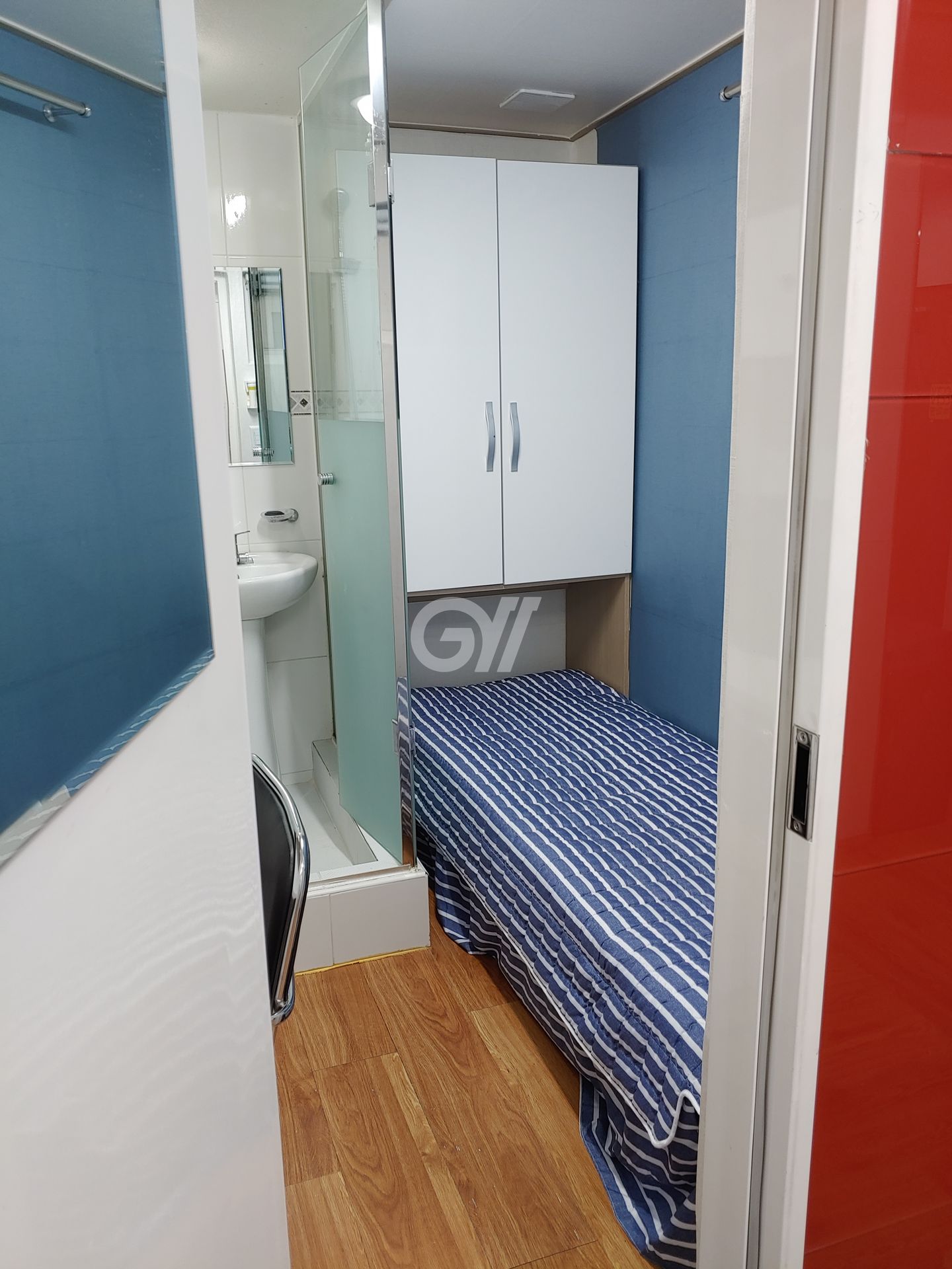 각 방에 샤워실만 있는 방 구조입니다. 화장실은 공용화장실을 이용해야 합니다.