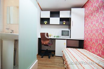 각 방에 샤워실과 화장실이 모두 없는 방 구조입니다. 공용샤워실과 공용화장실을 이용해야 합니다.